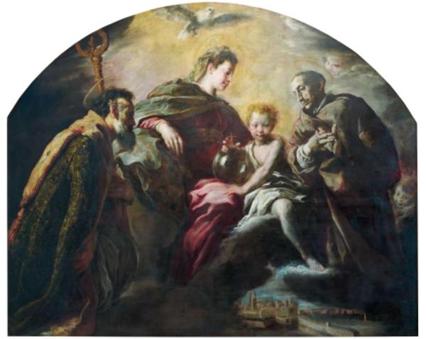 - OGGETTO Pittura su tela Madonna con Bambino e i santi Anselmo e Carlo Borromeo