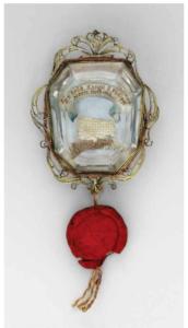 Fregi e incisioni: cornice modanata a riccioli e foglie. Iscrizioni sulle cedule: al recto e al verso «Ex tela sangu. S. Philippi / Nerii imbuta».