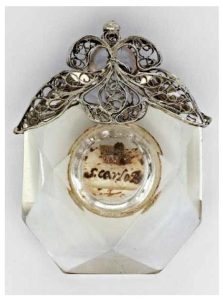 Fregi e incisioni: cornice modanata a riccioli e foglie. Iscrizioni sulle cedule: al recto «S. Carlo Borromeo», al verso «[…]».