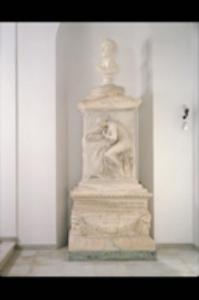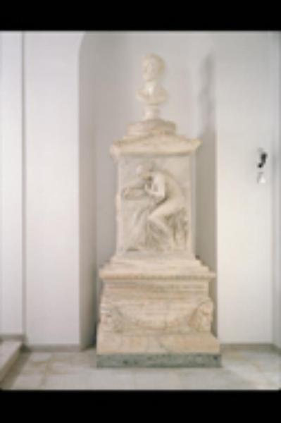 Monumento funerario composto da un basamento scolpito; il corpo del monumento presenta un bassorilievo; sulla cima si trova un busto d'uomo