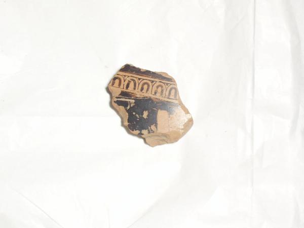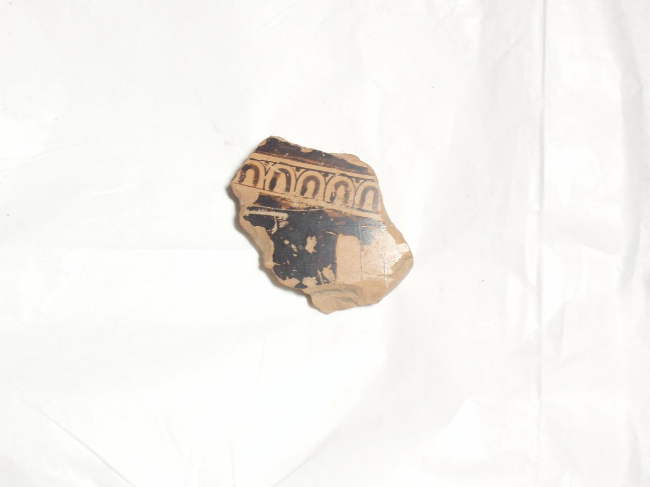 frammento di terracotta dipinta di rosso e nero