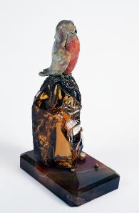 gufo poggiato su una base irregolare a sua volta poggiante su base parallelepipeda