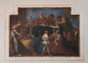 - NOTIZIE STORICO CRITICHE Celebrazione della vita dei due martiri cristiani venerati dalla Chiesa cattolica per la loro opera di evangelizzazione nell'Italia settentrionale. Nazaro fu un predicatore del Vangelo, mentre il piccolo Celso un bambino, affidato all'uomo per il suo battesimo. I due martiri condannati dal Prefetto Anolino, furono decapitati e ritrovati per mano di sant'Ambrogio. Si narra che soltanto uno dei due martiri venne trovato decapitato, e il Vescovo organizzò il trasferimento delle spoglie di Nazaro, ritrovate negli orti fuori città a Porta Romana, nella Basilica degli Apostoli, dove Celso decise di edificare una Chiesa dedicata a S. Maria degli Angeli, per l'innocenza del bimbo decapitato. Da calendario liturgico i Santi Nazaro e Celso vengono ricordati ogni 28 luglio. Di queste tele si ha menzione nel Decreto di ordinanza del Cardinale Borromeo del 157, in cui, tra le altre cose, viene dichiarato 'che venga eseguito il rifacimento dell'altare (con il suo ingrandimento e l'inserimento di un nuovo piano di appoggio) e delle aperture con le ferrate e le 'tele' da apporre'.
