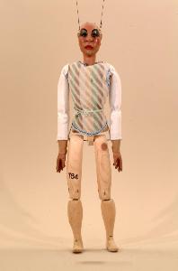 Corpo grande tagliato in vita a incastro.\nTesta con bocca e occhi fissi.\nMani mobili con dita separate.\nPiedi fissi con piombatura.\nBilancino originale a croce metodo Holden.