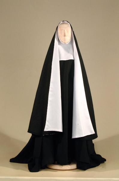 Costume di religiosa composto da tonaca, pazienza, mantello, soggolo, collare e cintura.