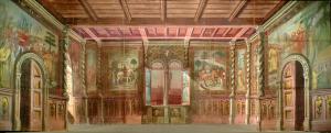 - NOTIZIE STORICO CRITICHE Dati didascalici rilevati dalla scritta calligrafica a matita blu di Giovanni Colla collocata sul retro della scena.\nLa "Ginevra degli Almieri", ovvero "La Sepolta viva", è un adattamento per marionette dell’omonima commedia scritta dall’attore Luigi Del Buono, autore fiorentino della II metà del XVIII secolo (1751- 1832). È l’inventore della maschera di Stenterello, che appare per la prima volta nel 1793 al Teatro del Cocomero di Firenze. Molte delle commedie scritte da Del Buono entrano nel repertorio del teatro delle marionette, come "Il diavolo mal maritato", "Stenterello viaggiatore e maestro di lingua italiana", "Il morto dal mantello rosso" e "I due gobbi". Il fenomeno si comprende poiché Del Buono aveva l’abitudine di vendere ad altre compagnie e ad altri attori i suoi copioni. Nel repertorio della Compagnia Colla la "Sepolta viva" è già presente nel 1835. Il manoscritto esistente risale al 1867, anno in cui il marionettista Testa Giovanni Domenico, collaboratore di Carlo Colla I, svolge la sua attività di copiatore e ricopia da un testo precedente il copione a noi giunto. Nella versione marionettistica la vicenda viene completamente trasformata: sparisce la scena IV, la scena V, la scena VI e la scena VIII del II atto; i personaggi dei soldati della scena X sono sostituiti dai becchini; sono tagliate la scena IV e parte della V del III atto. L'atto IV comincia con l'ingresso del giudice e si raccorda direttamente con la scena II; la scena IV, quella in cui Stenterello si finge avvocato, è eliminata. "La ginevra degli Almieri" è per la Compagnia Carlo Colla e Figli una commedia di successo e permane nel repertorio anche quando la compagnia fa il suo ingresso al Teatro Gerolamo, nei primi anni del XX secolo. E' questa l'epoca a cui possiamo far risalire i costumi. L’ultima rappresentazione di questo spettacolo avviene il 18 Novembre 1956. Una curiosità riguarda le scenografie, poiché esistono due saloni settecenteschi che, malgrado la dicitura relativa alla commedia "Il matrimonio segreto", riportano in matita blu a grafia di Giovanni Colla, anche la dicitura "Ladro notturno". E' possibile pensare che fossero stati commissionati per la "Ginevra degli Almieri", prima della decisione di ambientare la vicenda a Firenze in epoca quattrocentesca.