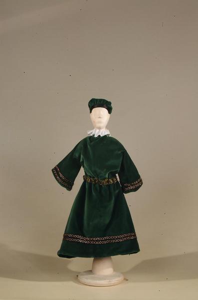 Costume borghese del '400 per figurino costituito da veste, collo e cappello