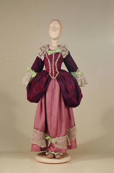 Costume da dama di foggia settecentesca composto da gonna, corpino e scarpe.