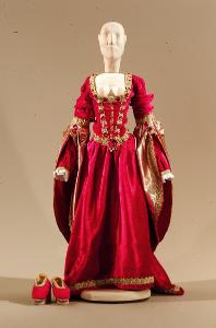 Costume per dama del 1500, composto di gonna, corpino, scarpe
