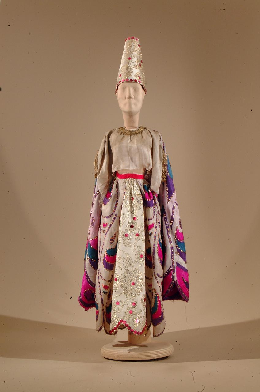 Costume fantastico composto da corpino, gonna, cappello, mantello