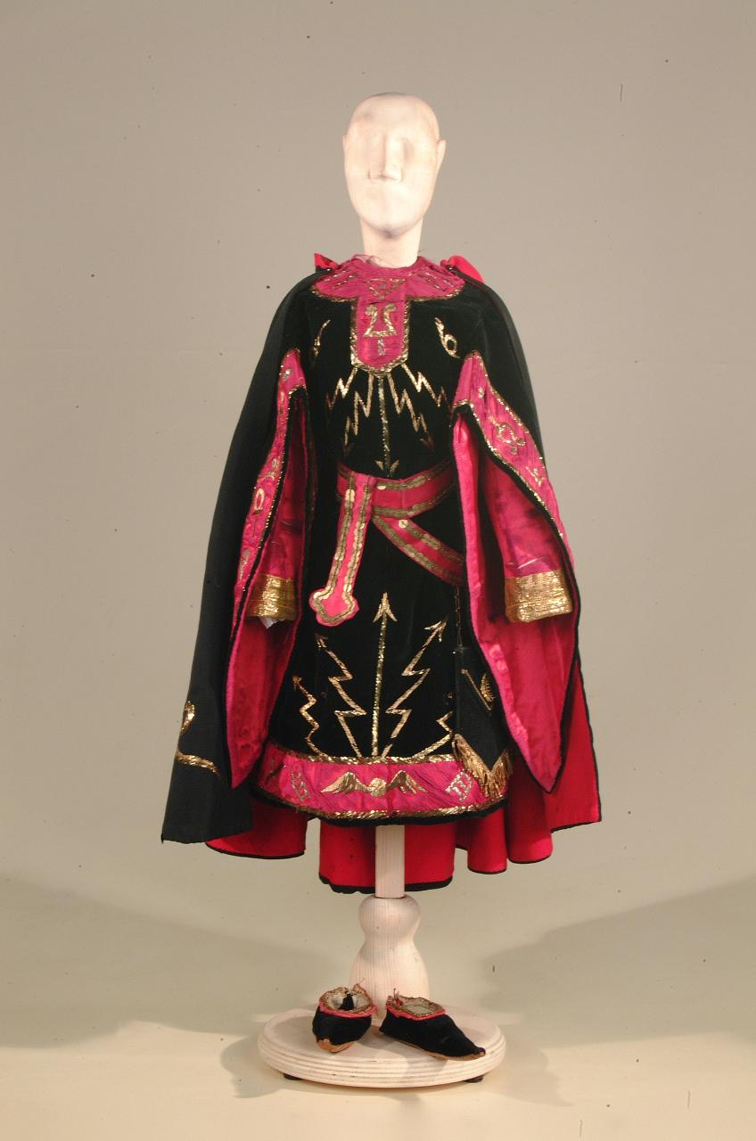 Costume da nobile medievale composto da veste, cintura, mantello e scarpe