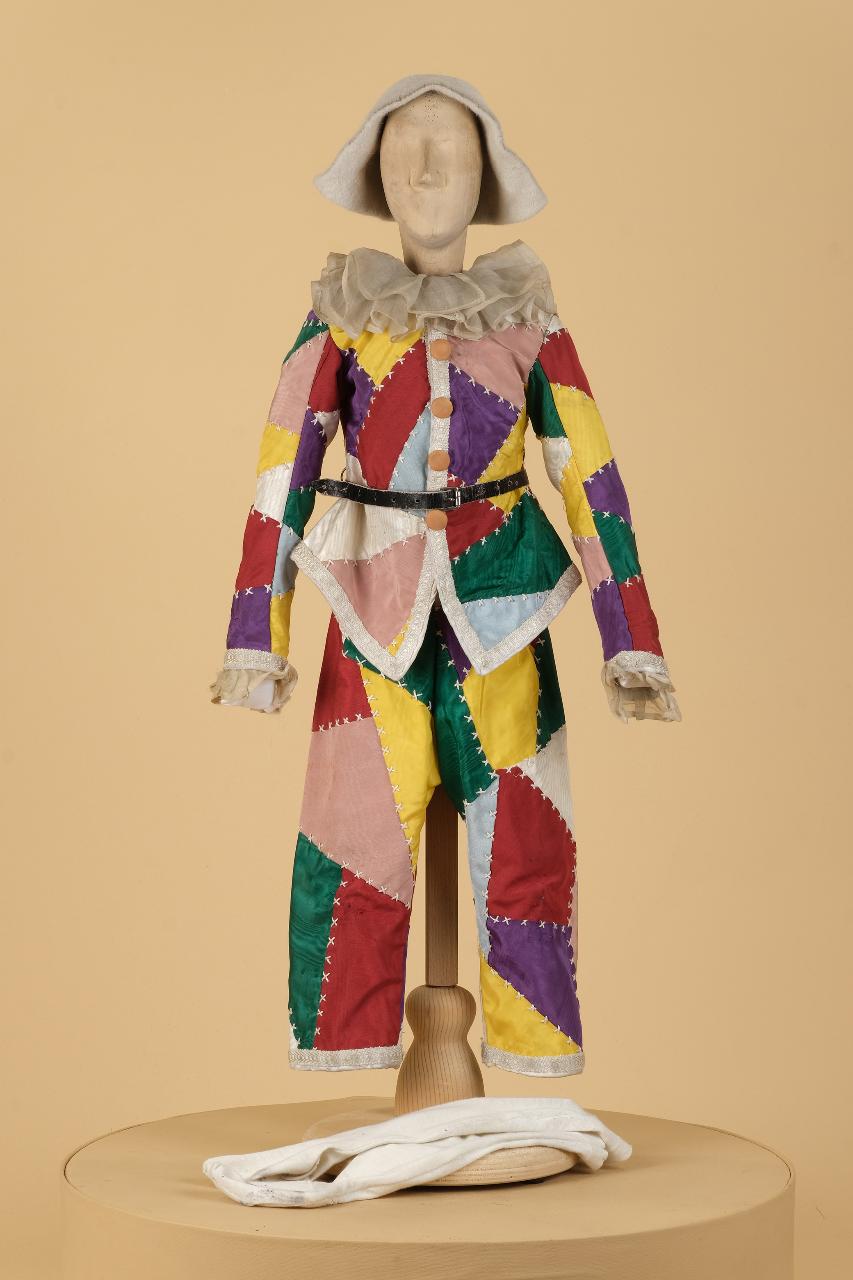 Costume della maschera di Arlecchino composto da quattro pezzi.