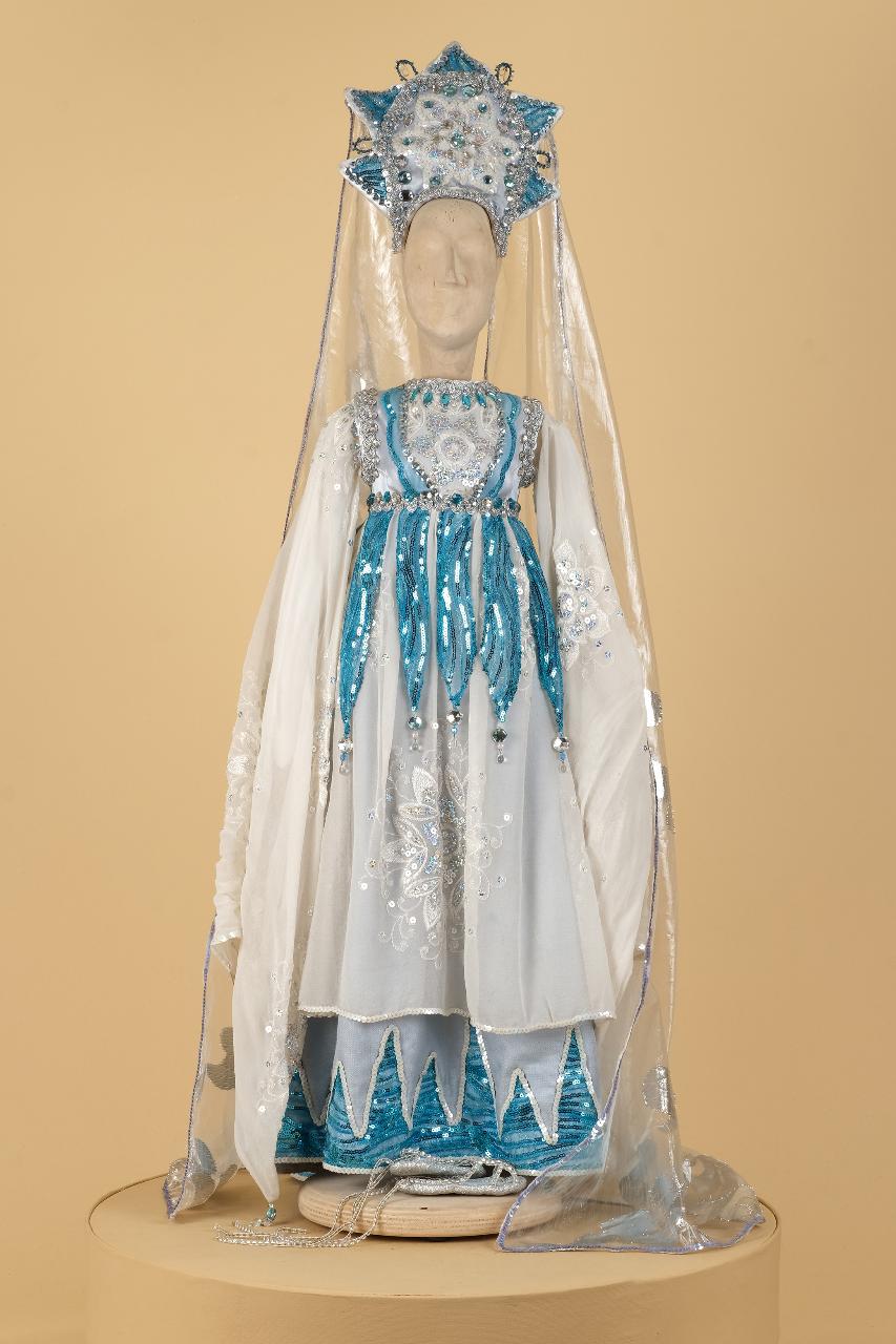 Questo costume fantastico è ispirato all'estetica fiabesca e richiama elementi della tradizione russa. è costituito da quattro pezzi.