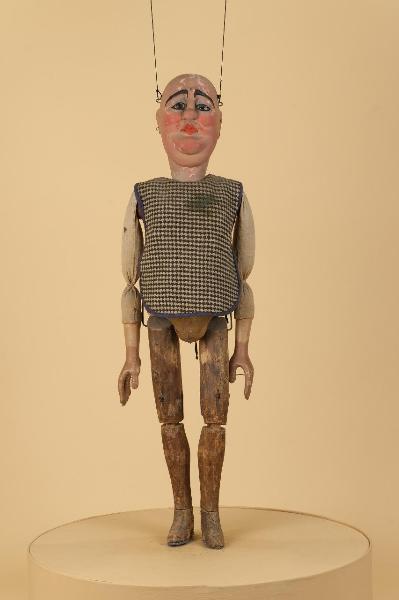 Testa in legno di cirmolo fissata al corpo tramite ferro; occhi di vetro; corpo normale in pioppo e cartapesta; gambe in pioppo attaccate con ferro al bacino; ginocchia ad incastro; piedi piombati; mani in tiglio con dita unite. Piedi fissi. Bilancino a croce, metodo Holden.
