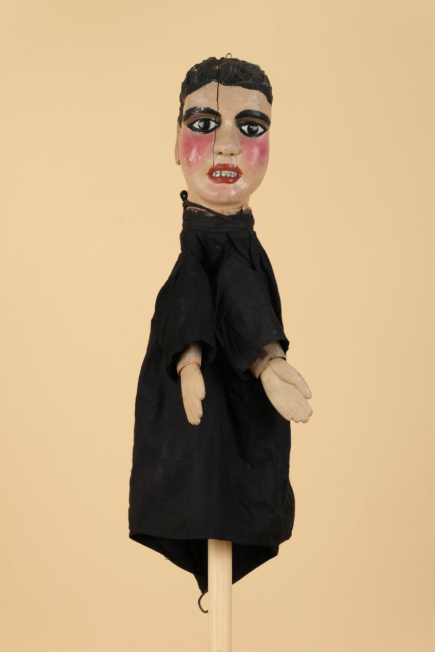 - NOTIZIE STORICO CRITICHE Viste le dimensioni della testa, trattasi molto probabilmente di un burattino di tradizione bergamasca. Alcune concordanze stilistiche, soprattutto della dipintura, fanno presumere che questo burattino potrebbe essere appartenuto al burattinaio Giuseppe Cornalba. Le braccia sono rinforzate con cartone.