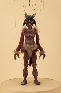 La marionetta raffigura il personaggio di un diavolo e fa parte di un gruppo di tre figure similari. Il corpo è interamente articolato e scolpito evidenziando le parti anatomiche con caratteri orrorifici. Il volto riporta un ghigno con denti a zanna e lingua sporgente. Il naso è pronunciato, mentre le sopracciglia folte ed inarcate fan da contorno agli occhi animaleschi in vetro rossiccio, incastonati. Le orecchie sono pronunciate e pendono verso il basso. Ad accentuare l'aspetto diabolico del carattere, dal cranio spuntano due corna a nodi che si sviluppano all'indietro. Le braccia in tessuto imbottito, ricoperto di maglina di cotone marrone, terminano con mani mobili scoplite ad artiglio come i piedi. La colorazione dell'insieme è giocata sulle tonalità marroni, bruno rossiccie. Alcuni inserti in pelliccia raccordano il collo, le ascelle ed il bacino oltre a costituire la coda. Il bilancino è a croce.