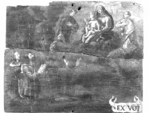 - NOTIZIE STORICO CRITICHE Presso la chiesa di S. Valentino sono conservate più di 160 tavolette ex voto dedicate al Santo taumaturgico. Può darsi che questa tavoletta provenga da questa chiesa, dato che uno dei due santi potrebbe essere identificato con S. Valentino sia per il vestiario (sacerdotale) che per la presenza del calice.