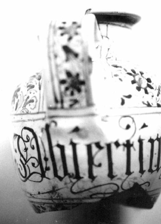Brocchetta di maiolica "alla porcellana". Colori: blu su fondo bianco.