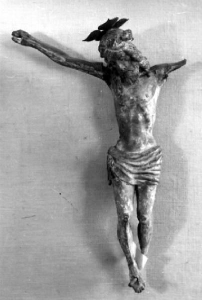 Scultura a tutto tondo raffigurante la Crocifissione. Il frammento è privo della croce.