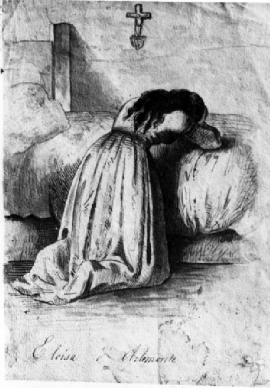 DONNA IN PREGHIERA VICINA AD UN LETTO