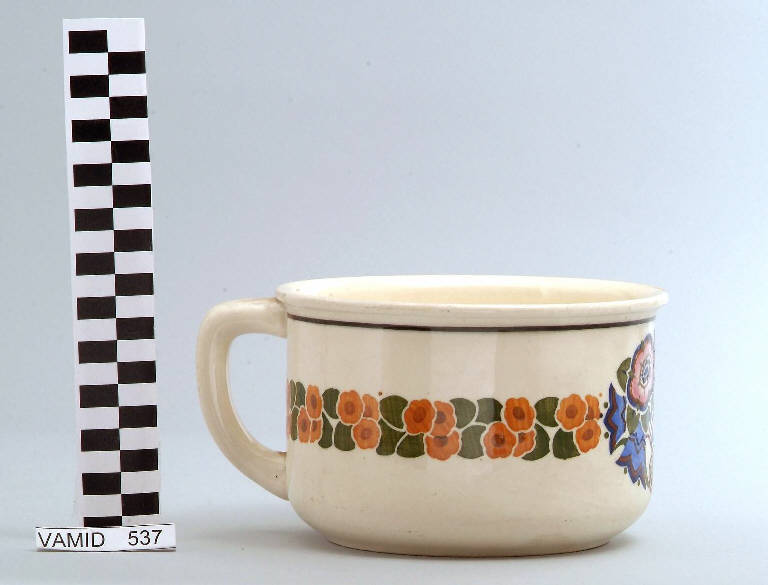- NOTIZIE STORICO CRITICHE Il pitale fa parte di un servizio igienico da camera (nn. inv. 535-537). Il decoro è stato applicato sottosmalto con la tecnica della mascherine.