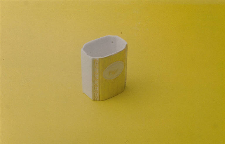 - NOTIZIE STORICO CRITICHE La pepiera è decorata con motivi a greca in oro su fondo bianco e su controfondo giallo. L'effetto è elegante e ben si adatta alla forma sagomata del piccolo contenitore.