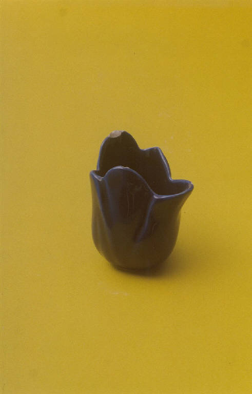 - NOTIZIE STORICO CRITICHE Si tratta di un piccolo vaso, forse un portacandela, formato dalla corolla semichiusa di un fiore simile al tulipano. La resa del fiore è stilizzata e vi è una semplificazione astratta che lo avvicina ad un oggetto di design.