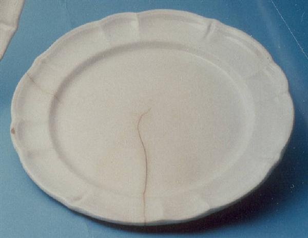 - NOTIZIE STORICO CRITICHE Il piatto, appartenente ad un servizio composto da due elementi (nn. inv. 1370-1371), è realizzato nella forma denominata "Vecchia Milano". Tale tipologia fu utilizzata negli anni Venti da Piero Portaluppi e successivamente, a partire dagli anni Trenta, da Guido Andlovitz con i decori "Lago Maggiore", "Vecchia Milano", "Fiori Vecchia Lodi" e "Meissen". La mancanza di elementi decorativi nel piatto in esame impedisce una definizione cronologica più circoscritta.