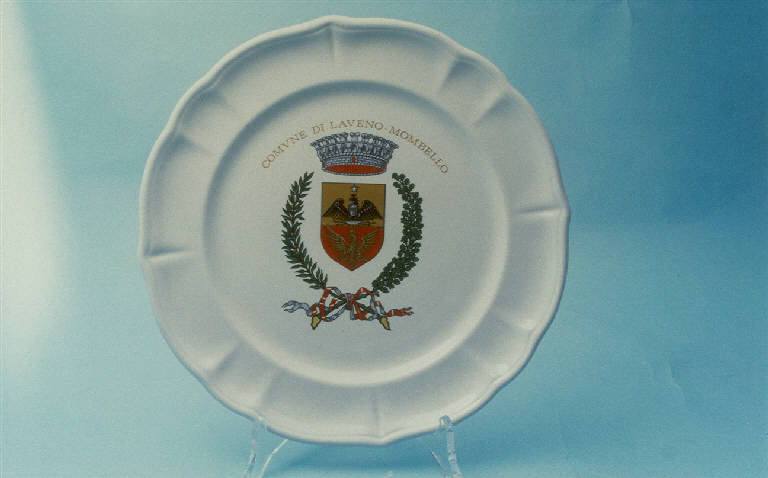 - NOTIZIE STORICO CRITICHE L'oggetto in esame, prodotto nel 1987 dalla Richard Ginori, ricorda il sessantesimo anniversario della fondazione del comune di Laveno Mombello istituito il 19 dicembre 1927 dall'accorpamento delle comunità di Cerro Lago Maggiore, Mombello Lago Maggiore e Laveno. Il piatto fu realizzato in terraglia dura con la forma cosiddetta "Vecchia Milano" e decorato da uno stemma eseguito con la tecnica della decalcomania. Nel Museo di Laveno è presente un altro piatto identico (num. inv. 1428).