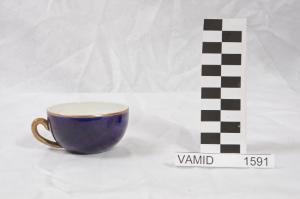 - NOTIZIE STORICO CRITICHE Il manico stilizzato e la foggia concava dell'oggetto in esame, facente parte di un servizio da caffè (nn. inv. 1589-1591), indicano una piena assimilazione del funzionalismo e suggeriscono una datazione tra la fine degli anni '30 e l'inizio degli anni '40, forse propio al 1939 se si considera l'ultimo numero presente nel marchio come l'anno di realizzazione. In mancanza di dati certi si preferisce mantenere una datazione generica. La coloritura blu cobalto è eseguita sottosmalto.