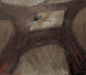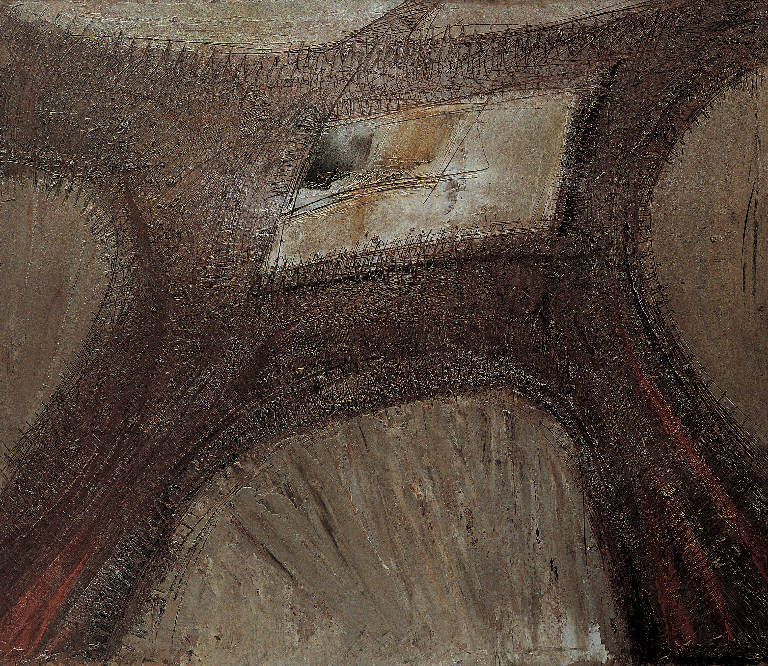 - NOTIZIE STORICO CRITICHE In "Eiffel Tower, 3" - unica versione in cui è dato cogliere anche la cima della torre - le quattro arcate si aprono in corrispondenza di ciascuno dei quattro lati del quadro con una singolare asimmetria che rivela la tensione quasi organica della struttura architettonica, simile a un grottesco animale o personaggio. La mole subisce infatti uno schiacciamento nella parte superiore, dove i piloni si allargano orizzontalmente, mentre un'energica spinta verticale sembra provenire da quelli inferiori e dalla più pronunciata concavità del loro arcone. E' lo stesso Congdon a fissare le simboliche risonanze dell'immagine: «Io sto dentro e guardo in su, al fallo diventato maschile e femminile - ridotto a scheletrica nebbia di un fallimento. Eppure lì sopra c'è un nero occhio (la terrazza) e c'è il faro girevole della salvezza che investe tutto con la sua luce». Nel margine superiore del quadro si coglie la cima della struttura, in un vertiginoso scorcio prospettico.