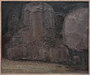 - NOTIZIE STORICO CRITICHE Anche se il momento più alto del periodo milanese è costituito dai "Crocefissi", a questa fase appartengono anche altre opere che ci riportano alla più consueta dimensione pittorica di Congdon. E' significativo - e le riflessioni sul diario ce ne forniscono una viva testimonianza - come l'immagine di Milano si presenti a Congdon proprio nel momento del distacco e dell'allontanamento dalla città, quasi "in extremis", dunque. Conscio dell'avvenuto esaurimento della pittura di tema religioso, Crocefisso compreso, Congdon si confronta ora con quello che è l'unico soggetto milanese di una certa consistenza, che lo riporta, vista l'enfasi con cui viene trattata la maestosità tipicamente romana di San Lorenzo, a quella pittura di "memorie storiche" propria dei primi anni '50.