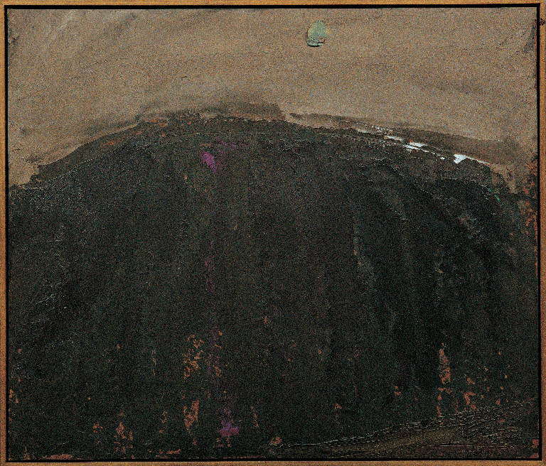 - NOTIZIE STORICO CRITICHE La produzione legata ai soggiorni a Subiaco sembra decisamente privilegiare i notturni. Ne è esempio eminente la serie di Lune dipinte nel luglio del 1967. Contrariamente a quanto ci si potrebbe aspettare, almeno questo "12" è in effetti di timbro straordinariamente chiaro. Vi contribuiscono non solo i verdi teneri e i violetti, e la strisciata di bianco sul bordo della massa della montagna, o l'argento mescolato al colore nel cielo, ma anche il fatto che l'opera sia stata dipinta direttamente sul pannello di masonite chiara, senza la consueta preparazione in nero. La scarsa saturazione delle tinte, esaltando gli accordi di tono, crea pertanto una sorta di luminosità diffusa.