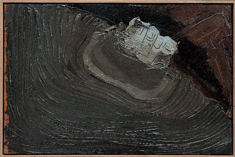 - NOTIZIE STORICO CRITICHE Dalla visione aerea dei villaggi arroccati sui torrioni rocciosi nelle caratteristiche "ambe" dello Yemen, Congdon annota, sia nel diario che nei vari schizzi, i tratti fondamentali che determinano questa importante serie di opere. Come per gli altri soggetti ispirati da questo viaggio, la fluidità e la sensazione di galleggiamento divengono, così come il continuo gioco di trasparenze cromatiche e dei magistrali incastri spaziali, elemento che permette la fusione fra la spinta verticale della casa yemenita e la ripidità delle montagne "rugose" del deserto. Il pittore tende a isolare e a delimitare il soggetto dal suo contesto, per appoggiarlo poi, quasi facendolo barcollare, alla dimensione desertica, tutta giocata su sovrapposizioni tonali di colori caldi e bruniti, tornando a confrontarsi, con un linguaggio ormai decisamente astratto, con degli scenari urbani perfettamente integrati alle architetture naturali.