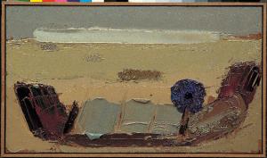 - NOTIZIE STORICO CRITICHE Ai delicati accordi di "Deserto Yemen, 2" subentrano, in "Metlaoui, 2" del 1972, contrasti di tono e cromatismi più accesi, particolarmente evidenti nella enigmatica forma campita nella parte inferiore. Qui le spatolate si articolano e si aggrumano in un ritmo sincopato che non solo traduce una precisa realtà topografica (un convoglio ferroviario fermo a una curva dei binari, sullo sfondo un po' sognante del deserto tunisino), ma fissa e condensa in una forma emblematica l'attimo di un dramma che il diario ci permette di ricostruire puntualmente: dai finestrini della propria carrozza (le tre macchie grigiastre al centro del convoglio), l'artista assiste impotente al linciaggio di un arabo, all'esterno del treno, da parte della folla inferocita (e la corolla bluastra forma un gorgo di violenza attorno al suo nucleo nero).