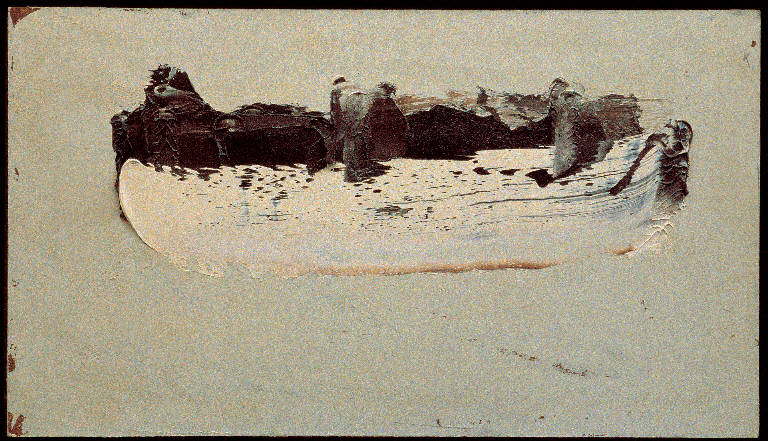 - NOTIZIE STORICO CRITICHE Le navi, come gli edifici, assumono nell'immaginario congdoniano natura di persone, nel senso originario di "dramatis personae". In "Heleanna" (di cui Congdon eseguirà numerosissime versioni) la divisione tra cielo e mare è cancellata dalla uniforme luce lattiginosa, sulla quale poche energiche spatolate modellano la forma dimidiata del traghetto greco, candida nella parte inferiore, intatta, e color bruno-ruggine nella parte superiore, quasi carbonizzata da un incendio. Un'unica, potente e candida spatolata, sovrapposta al già bianco mare dello sfondo, sorregge e salva la nave dagli abissi marini. Ed è proprio questa spatolata che contraddistingue l'opera: non tanto simbolicamente - l'Heleanna è già simbolo - quanto vitalmente, come strutura e perno dell'immagine. Sarà proprio questa meditata spatolata. a un passo del virage rappresentato ai viaggi indiani, a suggerire l'immagine della "Madonna che porta in sé Cristo", cioè quel "seme" tematico che, come scriverà nel 1974, "ha generato in me, da quel giorno, la lunga e decisiva serie dei Crocefissi".