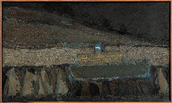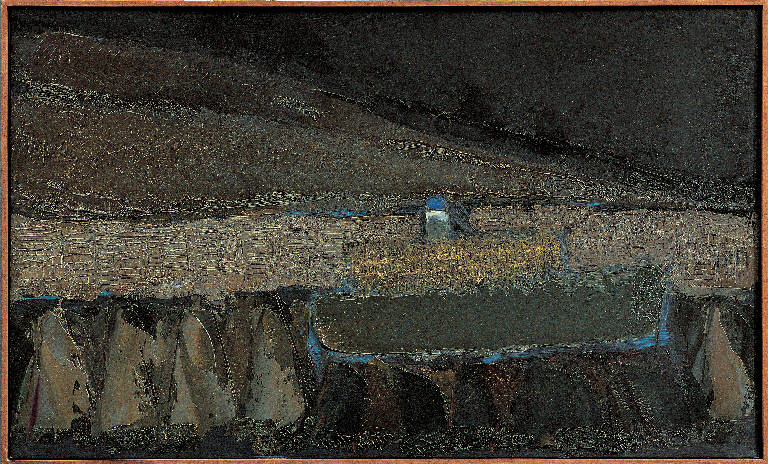 - NOTIZIE STORICO CRITICHE L'opera scaturisce dalle suggestioni visive di un viaggio in Grecia. Attraverso un procedimento pittorico oramai consueto, Congdon raffigura, con la disinvolta capacità di sintesi pittorica, i suoi temi più cari: il mare, le navi, gli insediamenti urbani. Sono soggetti che, tranne alcuni particolarmente naturalistici, vengono resi attraverso spatolate informali di colore scuro, illuminati da improvvisi bagliori, dove il "segno-colore" diviene protagonista assoluto dell'opera. La nitidezza delle direttrici delle spatolate e la purezza con cui viene steso il colore, anche quando questo si raggruma, ispessendosi, generano nello spazio pittorico campi cromatici che si intersecano e si sovrappongono, secondo diversi andamenti ritmici. Il persistere significativo dell'iconografia della nave diviene, inoltre, motivo per un divertissement coloristico in Patras, 2, come si evince dagli appunti diaristici.