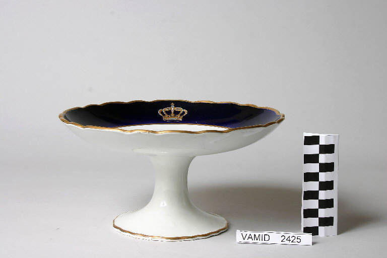 - NOTIZIE STORICO CRITICHE La fruttiera fa parte di un servizio già appartenuto agli Scotti Meregalli di Laveno e caratterizzato dalla corona del Regno d'Italia: il servizio è unico e non risulta prodotto in serie. Oltre agli esemplari in esposizione (inv. 2425-2438), sono conservati al museo altri otto piatti, una salsiera, una zuppiera, cinque porta uova e un piatto da portata.