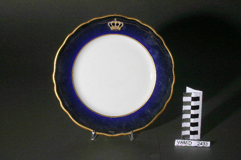 - NOTIZIE STORICO CRITICHE Il piatto da frutta fa parte di un servizio già appartenuto agli Scotti Meregalli di Laveno e caratterizzato dalla corona del Regno d'Italia: il servizio è unico e non risulta prodotto in serie. Oltre agli esemplari in esposizione (inv. 2425-2438), sono conservati al museo altri otto piatti, una salsiera, una zuppiera, cinque porta uova e un piatto da portata.