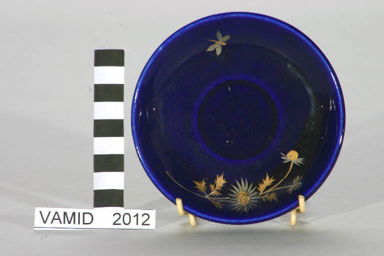 - NOTIZIE STORICO CRITICHE Il piattino fa parte di un servizio in blu cobalto databile tra la fine dell'Ottocento e l'inizio del secolo successivo. La coloritura blu è eseguita sottosmalto mentre i fiori sono realizzati in parte a rilievo a terzo fuoco in policromia e con oro brillante.