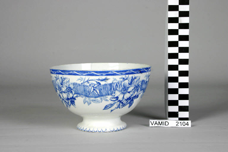 - NOTIZIE STORICO CRITICHE La ciotola presenta un decoro azzurro, applicato a transfer. La tipologia degli ornati e del decoro floreale risente del gusto naturalistico con echi simbolisti dell'ultimo quarto dell'Ottocento.