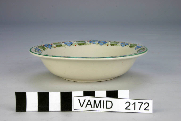 - NOTIZIE STORICO CRITICHE Il catino in miniatura è decorato con transfer applicato soprasmalto e rifinito in verde chiaro. Fa parte di un piccolo servizio da camera giocattolo, originale in tutte le sue componenti, che fu acquistato dal Museo della Terraglia durante la gestione Venezian.