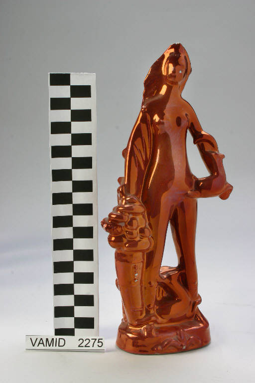 - NOTIZIE STORICO CRITICHE La statuetta, eseguita a colaggio e decorata con smalto rosso riflessato a lustro metallico a terzo fuoco, appartiene alla serie delle "Quattro stagioni" eseguita da Angelo Biancini nel periodo 1937-1940, quando lo scultore-ceramista si trasferisce a Laveno per collaborare con Guido Andlovitz alla direzione artistica. L'opera è denominata denominata "Autunno 1555" nel "Catalogo articoli fantasia 1955" della S. C. I. di Laveno.