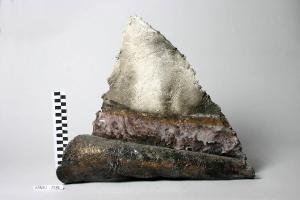 Blocco trapezoidale con spigoli vivi nella parte superiore e arrotondati nell'inferiore.