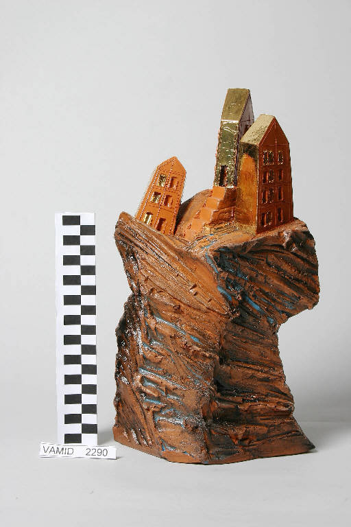 - NOTIZIE STORICO CRITICHE L'oggetto è realizzato in terracotta di Castellamonte, decorato con smalti, ossidi e lustro metallico dai riflessi dorati