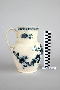 - NOTIZIE STORICO CRITICHE La brocca appartiene a un servizio igienico da camera decorato a stampa con transfer di colore blu applicati sotto smalto.Le prime manifatture a utilizzare la decorazione a stampa mediante una lastra di metallo incisa furono le francesi e le inglesi; certamente la Wedgwood, la notissima fabbrica di terraglie e porcellane inglesi, fu tra le prime ad ottenere risultati importanti in questa tecnica. la tecnica fu poi presto esportata in altri paesi europei.