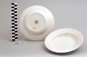 - NOTIZIE STORICO CRITICHE Il servizio di piatti in esame, composto da due elementi (nn. inv. 2967-2968 ), rientra in una tipologia di vasellame di gusto corrente risalente alla prima metà del Novecento. La mancanza di caratteri stilistici particolari impedisce una definizione cronologica più circoscritta. Il marchio presente sul fondo di ciascun elemento, secondo il Morazzoni della Società Ceramica Richard Ginori, fu in uso indicativamente dal 1883 al 1960 e fu impresso solo sulle terraglie prodotte nello stabilimento di San Cristoforo. Il servizio fa parte di una donazione di privati al Museo.