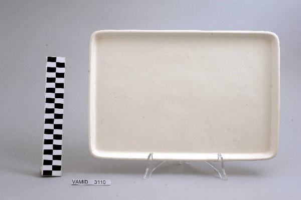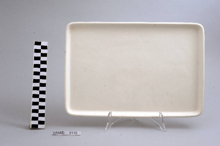 Vassoio rettangolare con bordo rialzato; fondo bianco uniforme.