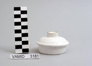 - NOTIZIE STORICO CRITICHE L'oggetto in esame, appartenente ad un servizio da thè composto da sette elementi (nn. inv. 3172...3229), si inserisce in un filone di stoviglie e vasellame di gusto corrente. Lo stile funzionale ed essenziale indica una datazione all'interno della seconda metà del Novecento. La ditta che lo ha prodotto ha realizzato nel 1998 la "Serie Fumo" (portapipe, posacenere, barattoli per tabacco) del designer Ambrogio Pozzi. Tipologicamente si lega ad un servizio da tavola composto da quattro elementi (nn. inv. 3177...3233).\nSi tratta di una tipologia prodotta, sempre nella linea gres, anche da altre manifatture come dimostrano il servizio da tavola (num. inv. 3176...3232), quello da colazione (num. inv. 3175, 3180), quello da thè (num. inv. 3174, 3179) e quello da caffè (num. inv. 3178, 3234) conservati presso il Midec.\nIl coperchio, privo di marchio, fa parte di una donazione di privati al Museo.
