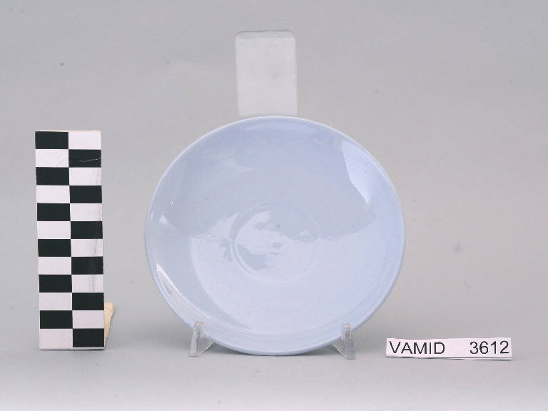 - NOTIZIE STORICO CRITICHE L'oggetto in esame, prodotto serialmente anche in altri colori, appartiene ad un servizio da thè (num. inv. 3608...3621). Il design semplice ed essenziale, che sembra vagamente ricordare la pulizia della forma "Pomezia", indica una piena assimilazione del funzionalismo e quindi una datazione ormai avanzata nel Novecento. Si tratta di una produzione, probabilmente influenzata dai progetti dell'Andlovitz, riferibile alla metà del secolo. Nel Midec è conservato un servizio da thè identico nella variante color verde (num. inv. 3604...3631). Il piattino fa parte di una donazione di privati al Museo.